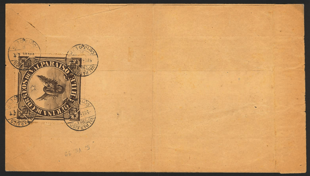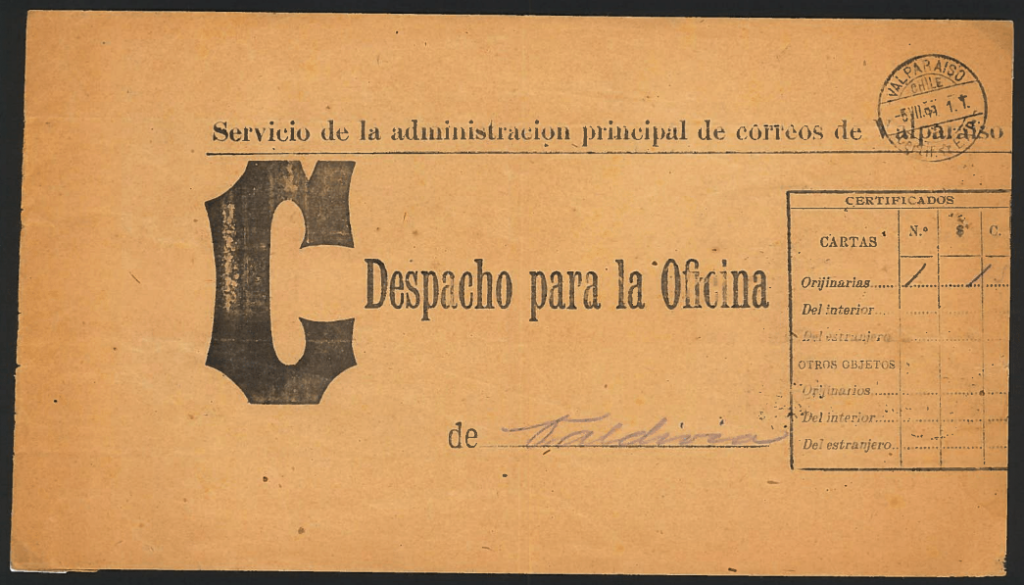 > Meist werden in den Internetforen Ebay, Delcampe oder auch Ricardo die offiziellen Briefverschlussmarken der experimentierfreudigen chilenischen Postverwaltung in Valparaiso zu unterschiedlichen Preisvorstellungen angeboten. Sowohl mit Stempel oder auch neuwertig sind sie immer wieder zu finden. Echt verwendet auf Poststücken sind sie allerdings kaum je auf dem Markt. Dass man auch mal eine „Sternstunde“ erleben kann, beweist dieser Brief aus Chile, gelaufen von Valparaiso nach Valdivia vom 5. Juli 1899.