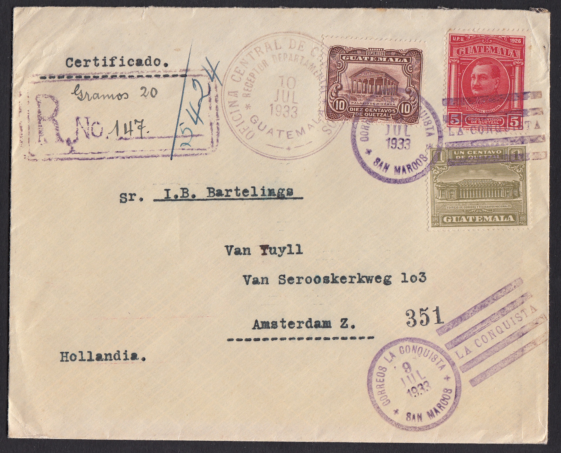 Guatemala - Als R-Briefe noch aufwendig behandelt wurden