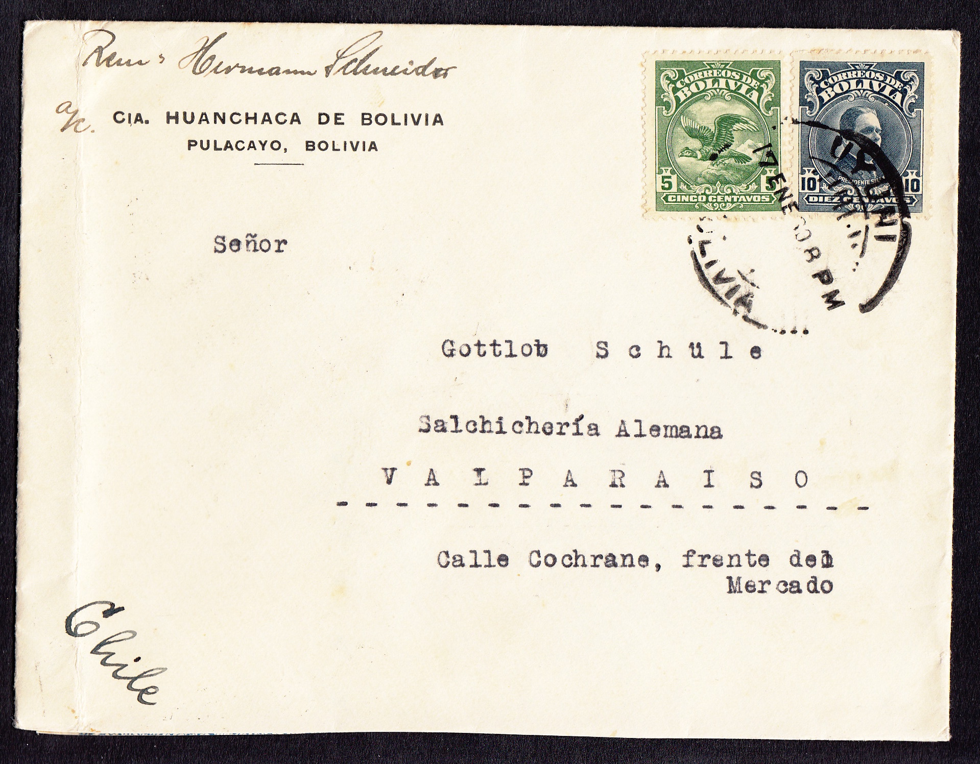 Der Ort Uyuni in Bolivien ist eher unwirtlich. Er liegt in 3670 Metern Höhe im Südwesten des Andenstaates; Regen fällt kaum. Dennoch siedeln dort Menschen, obwohl Wind und Kälte ihnen zu schaffen machten. „Platz der Lasttiere“ lautet die Übersetzung des Aymarawortes Uyuni. Lasttiere transportierten dort die Lebensgrundlage dieser Region und lieferten den Grund für ihre Bekanntheit: das Salz. Deshalb kommen zahlreiche Touristen, ist doch der Salar de Uyuni mit etwa 160 km Länge und 135 km Breite die größte Salzfläche der Erde, mit einer Salzkruste von 2 bis 7 Metern Mächtigkeit. Etwa 20 Kilometer ostnordöstlich von Uyuni in einer Höhe von 4103 Metern liegt der Ort Pulacayo, in dem 1930 auch der deutschstämmige Hermann Schneider lebte. Vermutlich war er Bergbauingenieur und war in führender Stellung in der Mine beschäftigt, die eine der größten Silberminen Boliviens war. Als Schneider 1930 den Brief verschickte, hatte der Ort 20.000 Einwohner, davon 7000 Minenarbeiter. Mitte der 1950er-Jahre waren die Vorkommen erschöpft; viele Bewohner verließen Pulacayo. Auch Hermann Schneider dürfte anderswo sein Glück versucht haben.